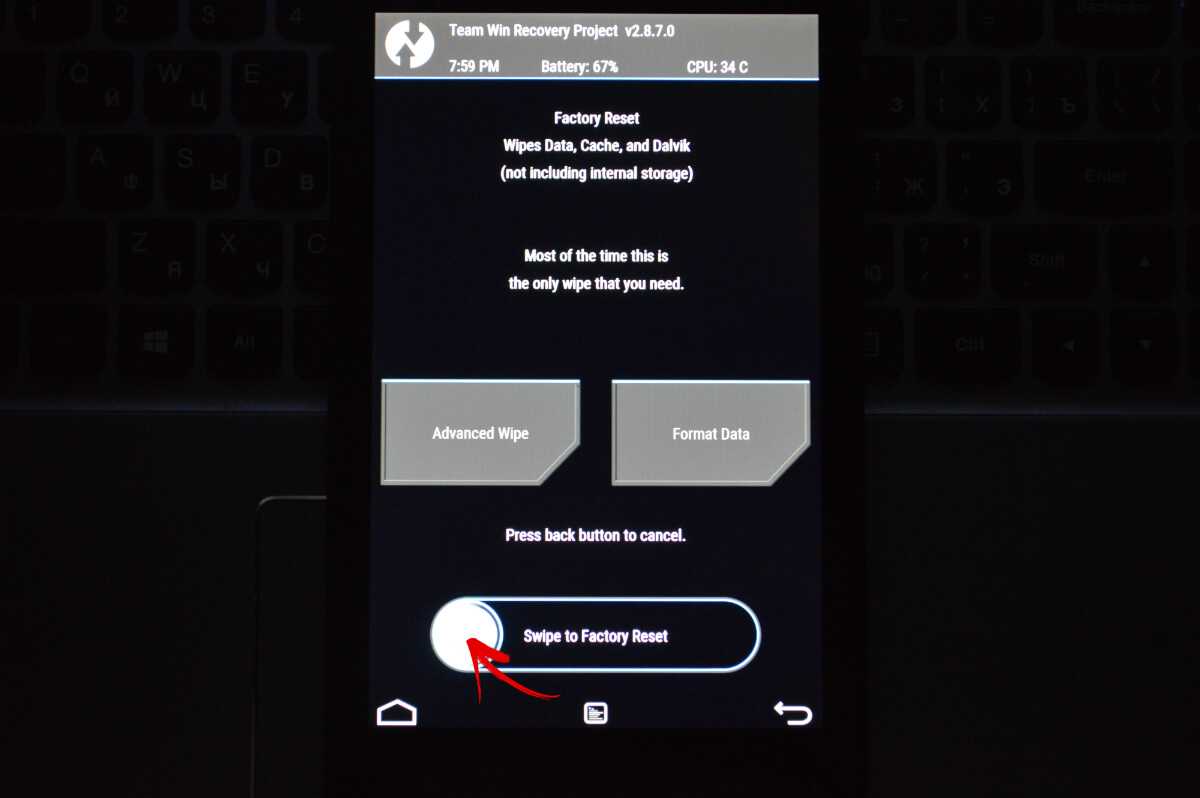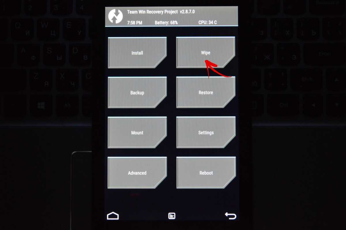 3. Теперь необходимо сбросить систему. Для этого выберите «Wipe» в главном меню.