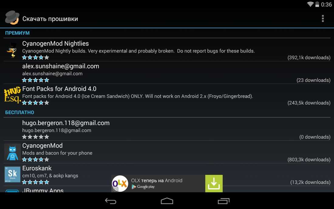 Также в ROM Manager есть функция поиска ROM для устройства. В главном меню программы выберите «Скачать прошивки». Некоторые из них доступны только в премиум версии программы.