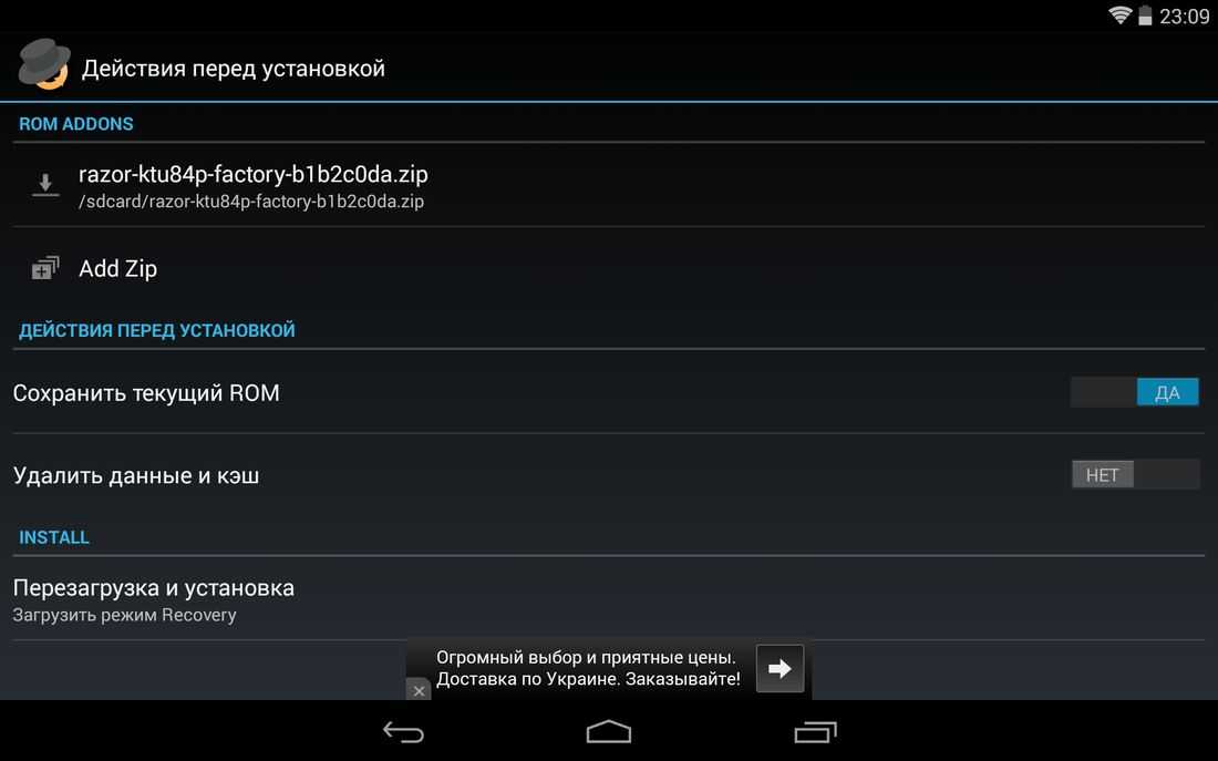 Рассмотрен еще один способ как прошить Android при помощи ZIP обновления. Также можно воспользоваться специальным приложением. Об этом ниже.