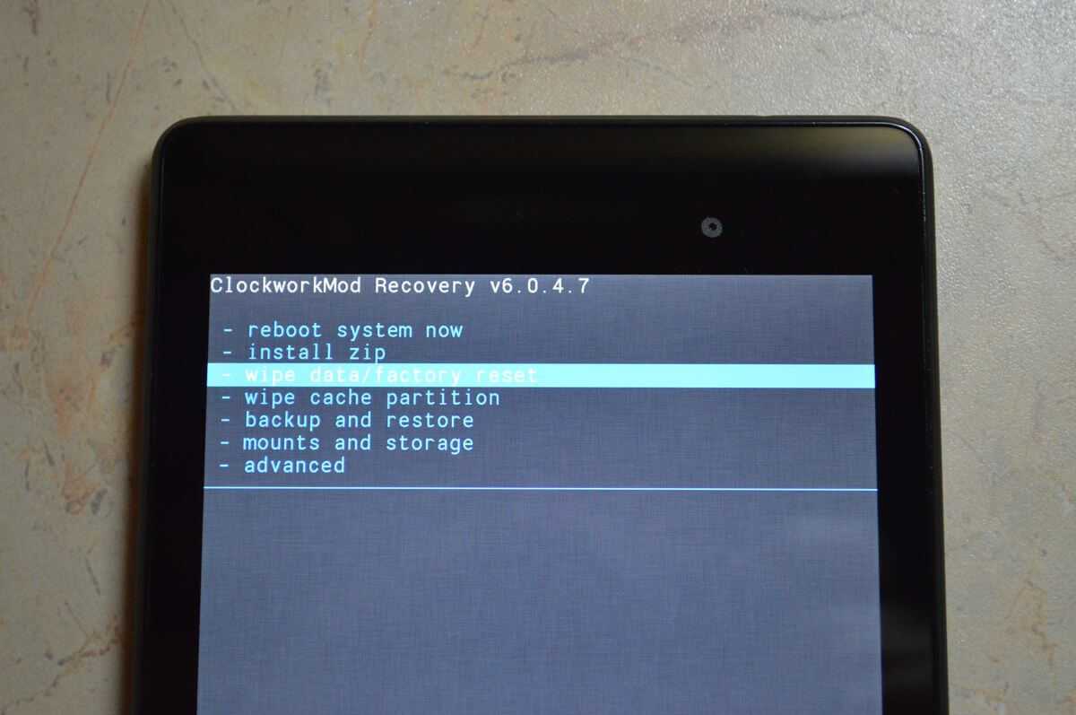 2. Перед установкой прошивки необходимо сначала сделать сброс настроек: выберите пункт «wipe data/factory reset».