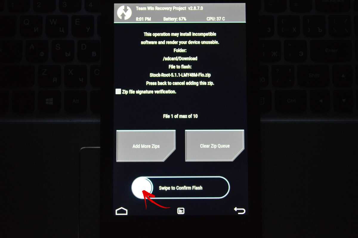 8. Перетяните ползунок вправо для начала установки прошивки.