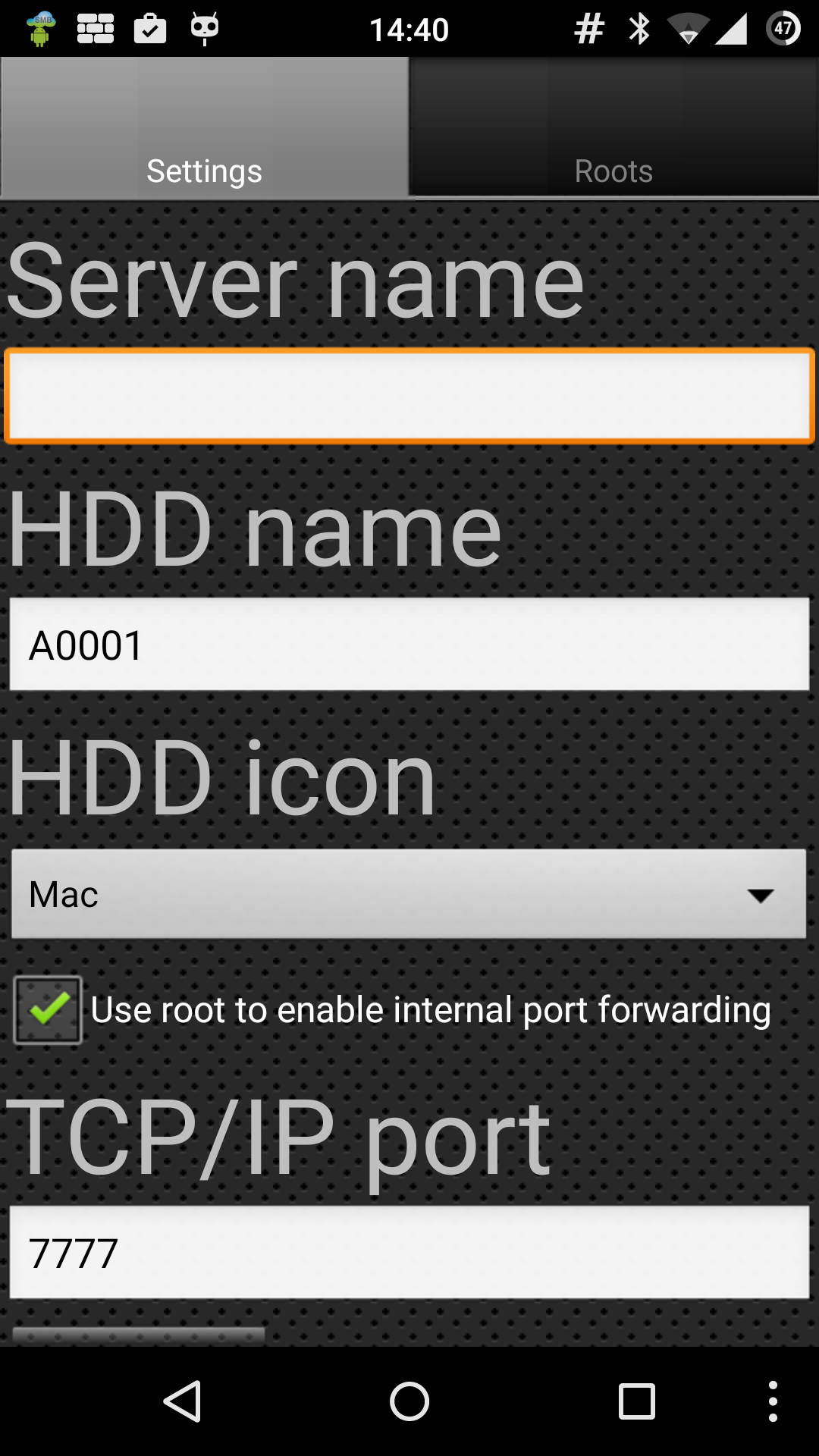 - Переходим на вкладку Roots и через кнопку Add добавляем расшариваемые папки. Не забываем вводить имя каждой из них.