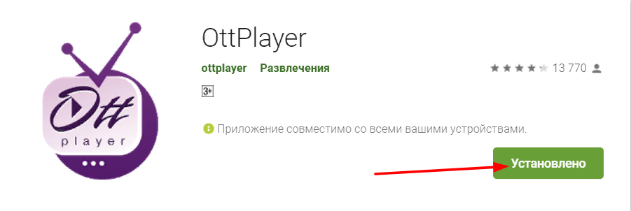 Установка приложения OTTplayer