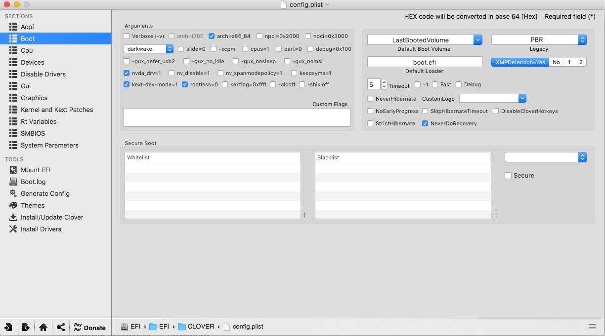 Первое что необходимо, так это скачать Clover и установить его на диск c системой. После чего смонтировать раздел EFI системы и загрузочной флешки. Далее перебросить config.plist, kexts и драйвера в систему. Подробней читайте в статье установить Clover в установленную систему!