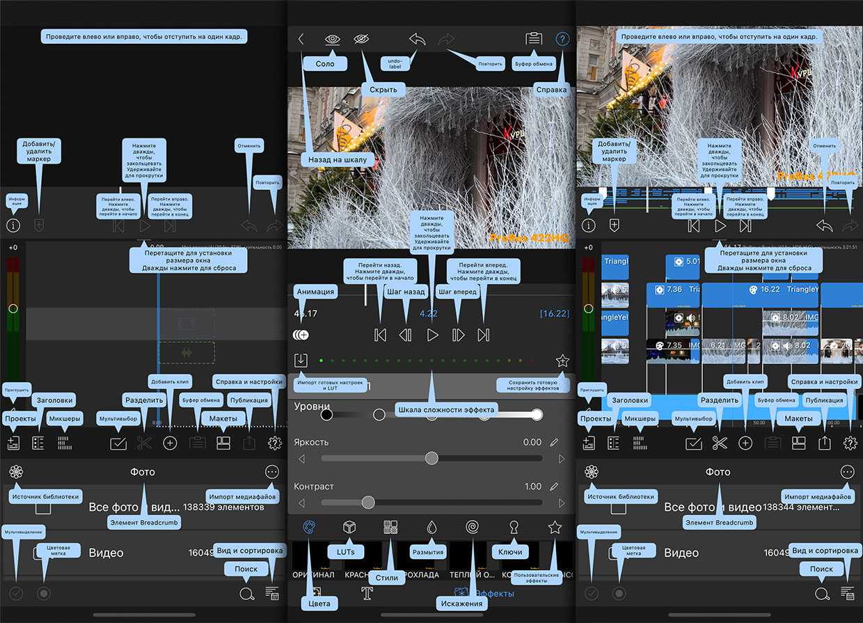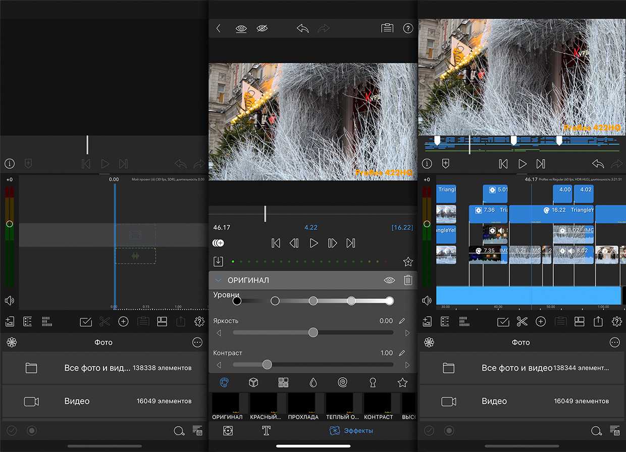 Например, в Final Cut Pro можно наложить до 99 треков один на другой. В LumaFusion всего 6.