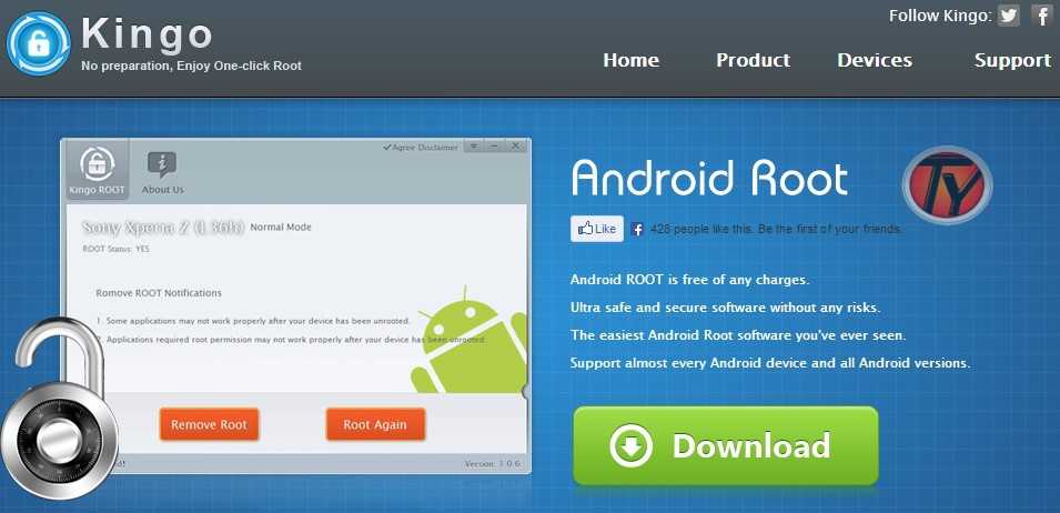 Сперва с компьютера заходим на сайт kingoapp, на главной странице сайта будет большая зеленая кнопка — »DOWNLOAD»;