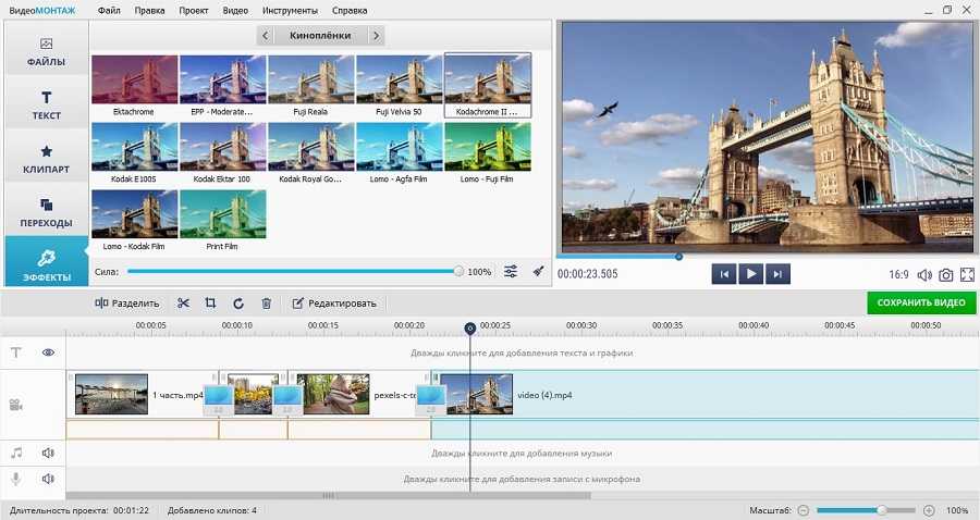 - Коллекция фильтров и эффектов для быстрого улучшения видеоклипа;