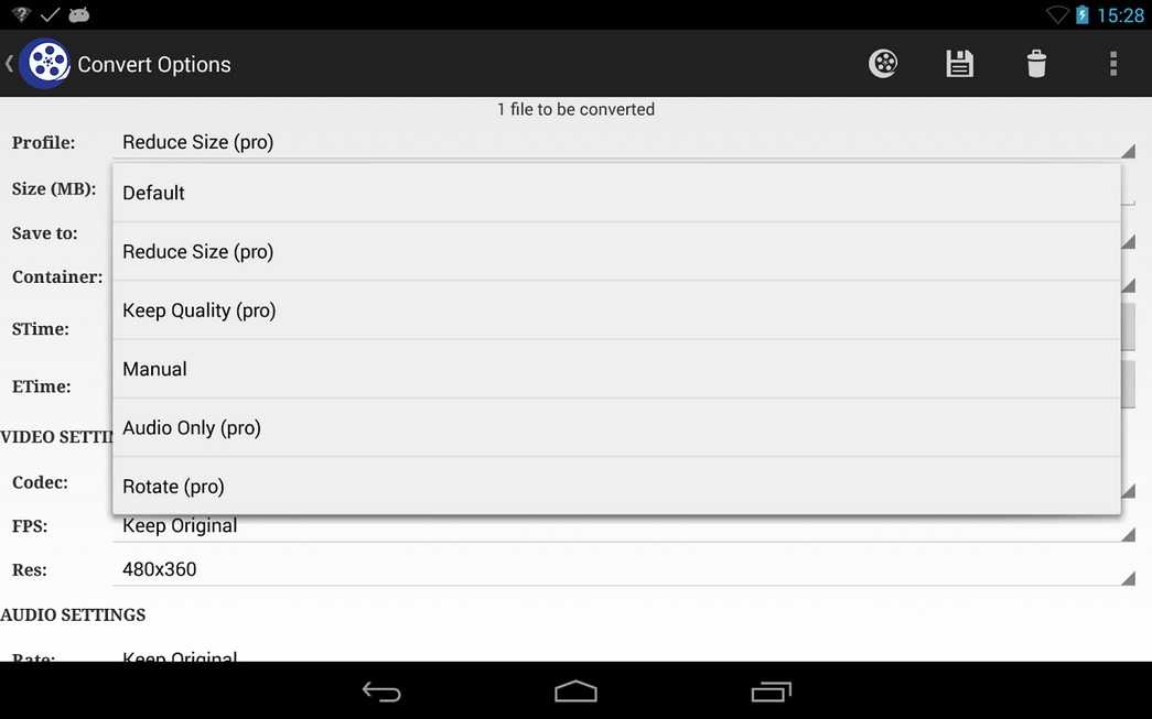 Video Converter это альтернатива использованию приложений MX Video Player, MoboPlayer, DoubleTwist Player, mVideoPlayer, VPlayer, RockPlayer и многих других видеопроигрывателей для просмотра ваших видео в различных форматах. Используйте Video Converter для Andoid чтобы преобразовать видео в форматы, которые поддерживает ваш Andoid и наслаждайтесь просмотром видео при помощи стандартного проигрывателя с аппаратным ускорением, что обеспечивает лучшее качество видео. Помимо сказанного, это, также, и приложение для поворота видео.