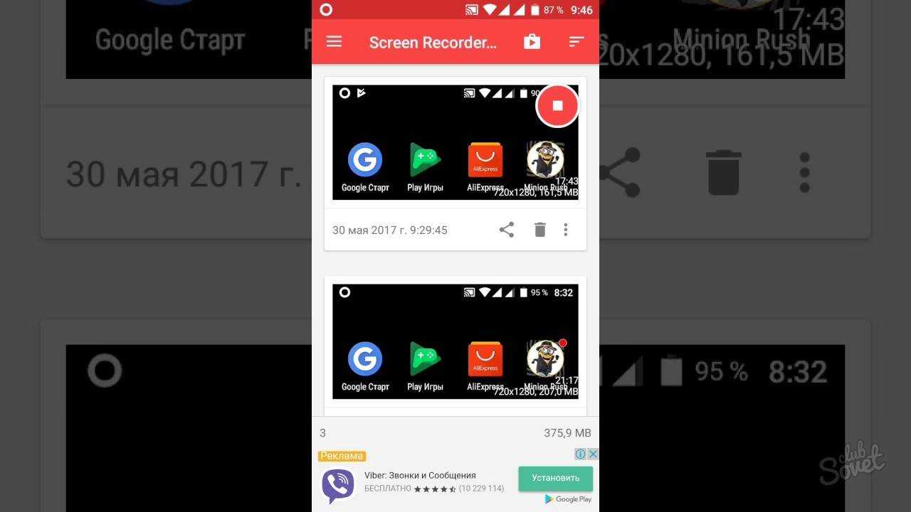 скриншота. Видео сохраняется в той же папке, что и скриншоты.