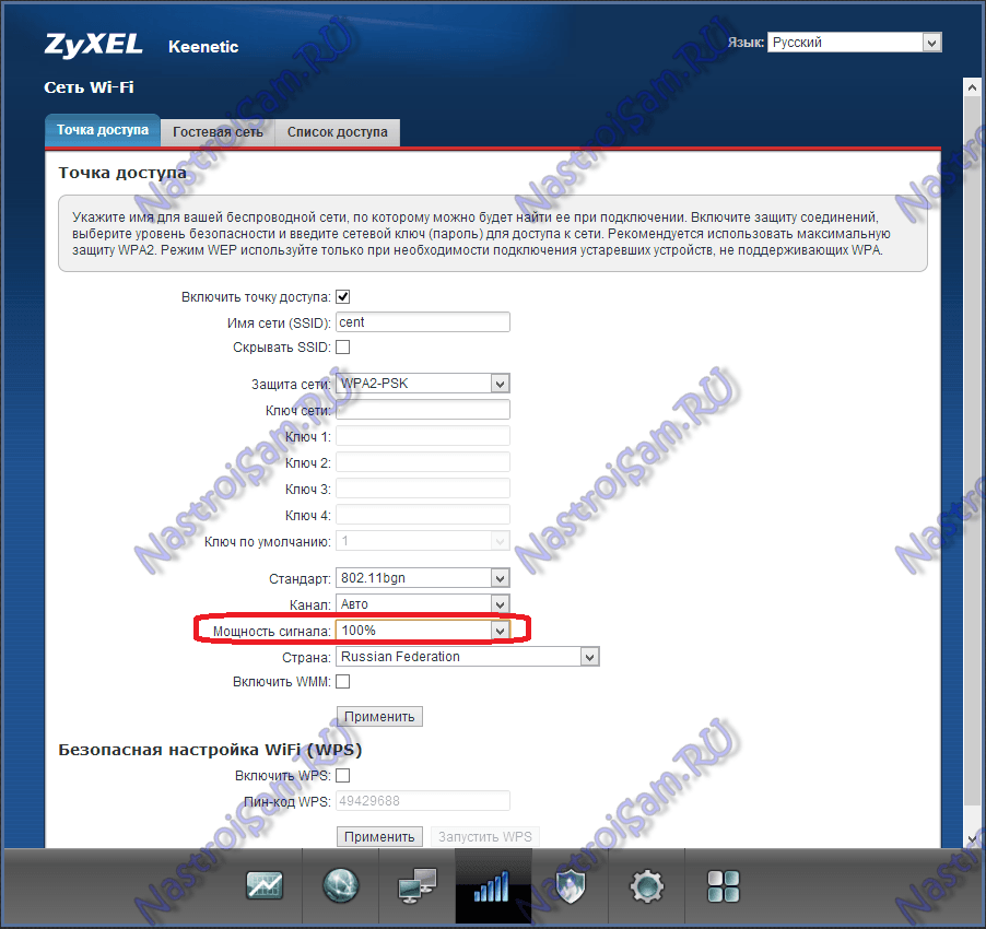 Настройка мощности. В настройках маршрутизаторов предусмотрена смена мощности. Как правило, при установке устройства задается максимально возможная мощность. Однако не лишним будет проверить этот пункт