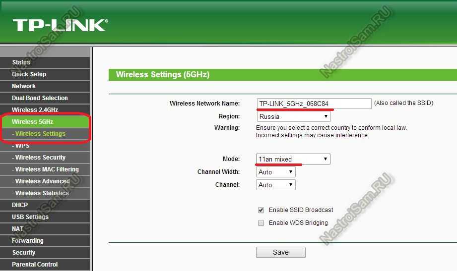 А вот так режим 802.11n выставляется на TP-Link: