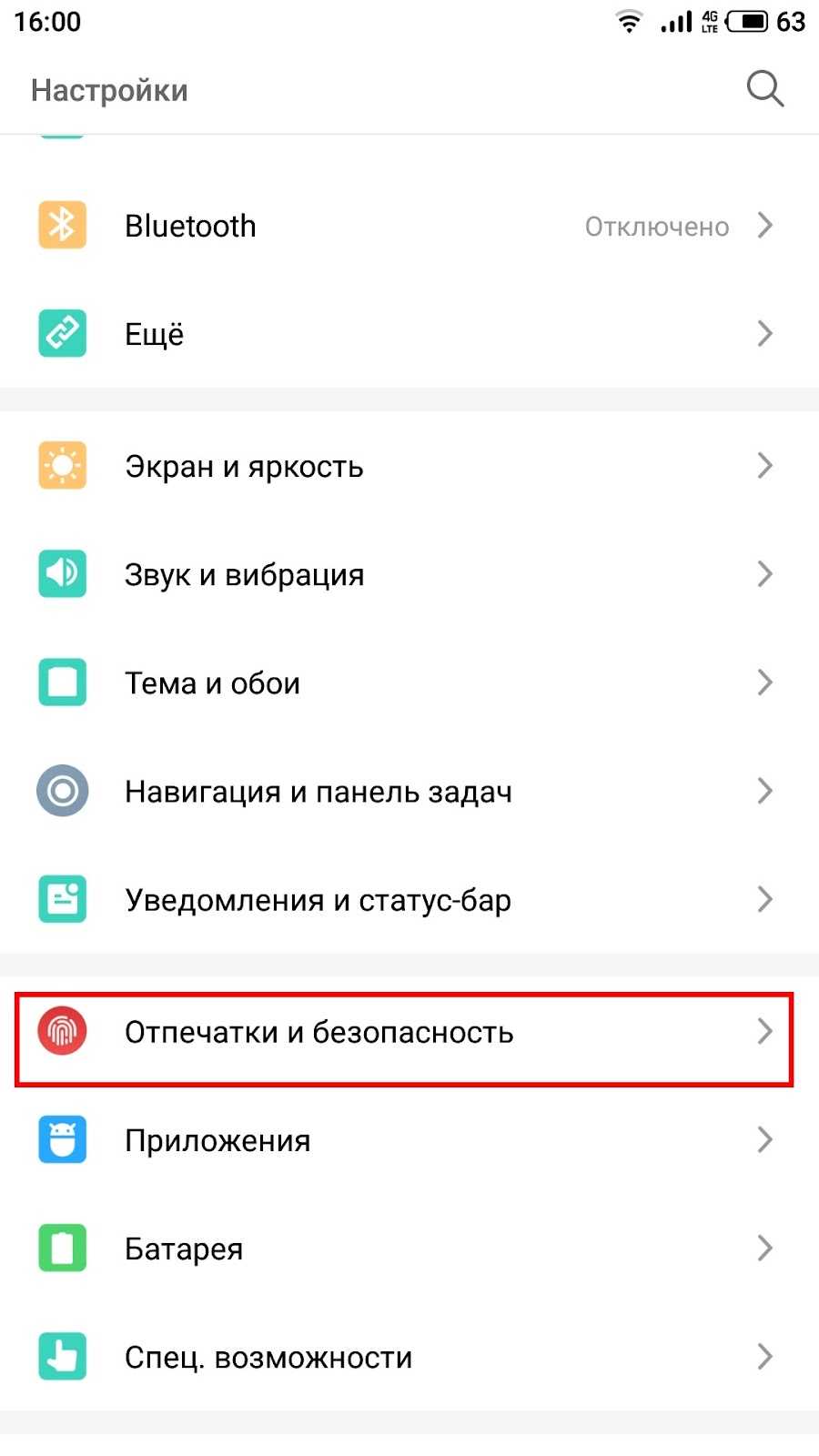 7. Затем, откройте настройки и перейдите в раздел «Безопасность».