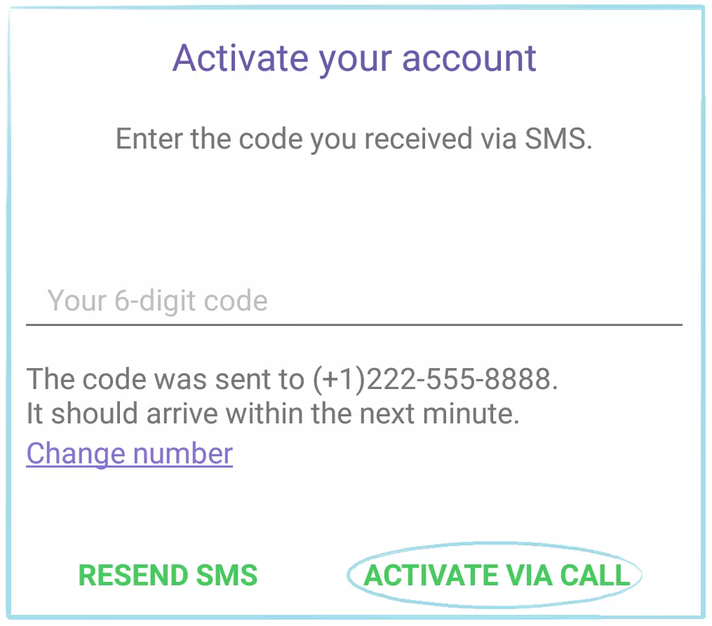 Дополнительно вы можете активировать свою учетную запись с помощью входящего звонка.