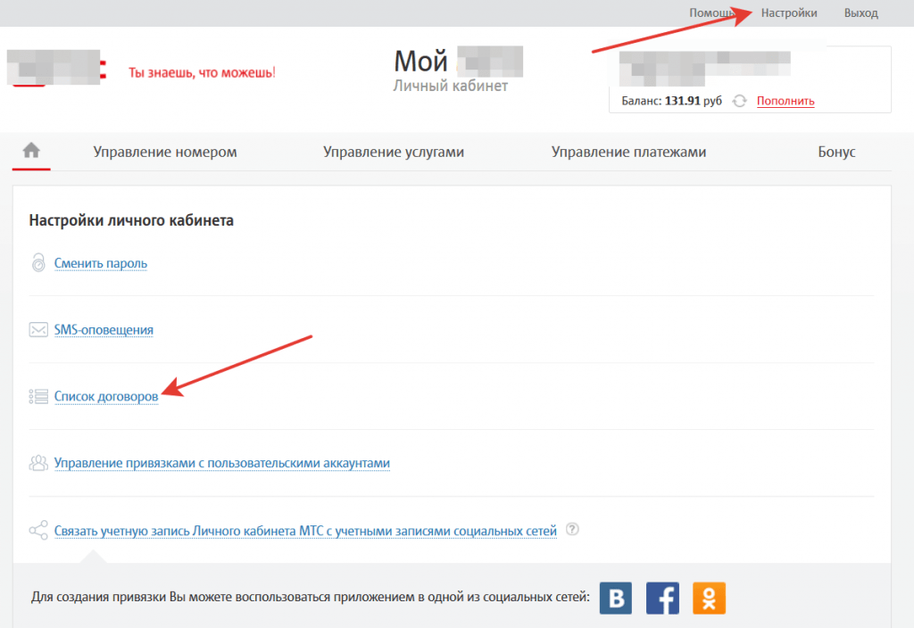 Личный кабинет МТС дает возможность от абонента на уровне юридического отдела компании сделать запрос обо всех зарегистрированных на ваше имя номерах. Просьба может быть зарегистрирована через Личный кабинет в «Настройках», далее зайдите в «Список договоров», нажмите на ссылку «Ознакомьтесь со списком договоров», далее на кнопку «Сформировать отчет» и дождитесь сообщения «Запрос зарегистрирован». Полный список номеров будет отправлен на указанный е-мейл или сохранен в папке запрошенных документов.