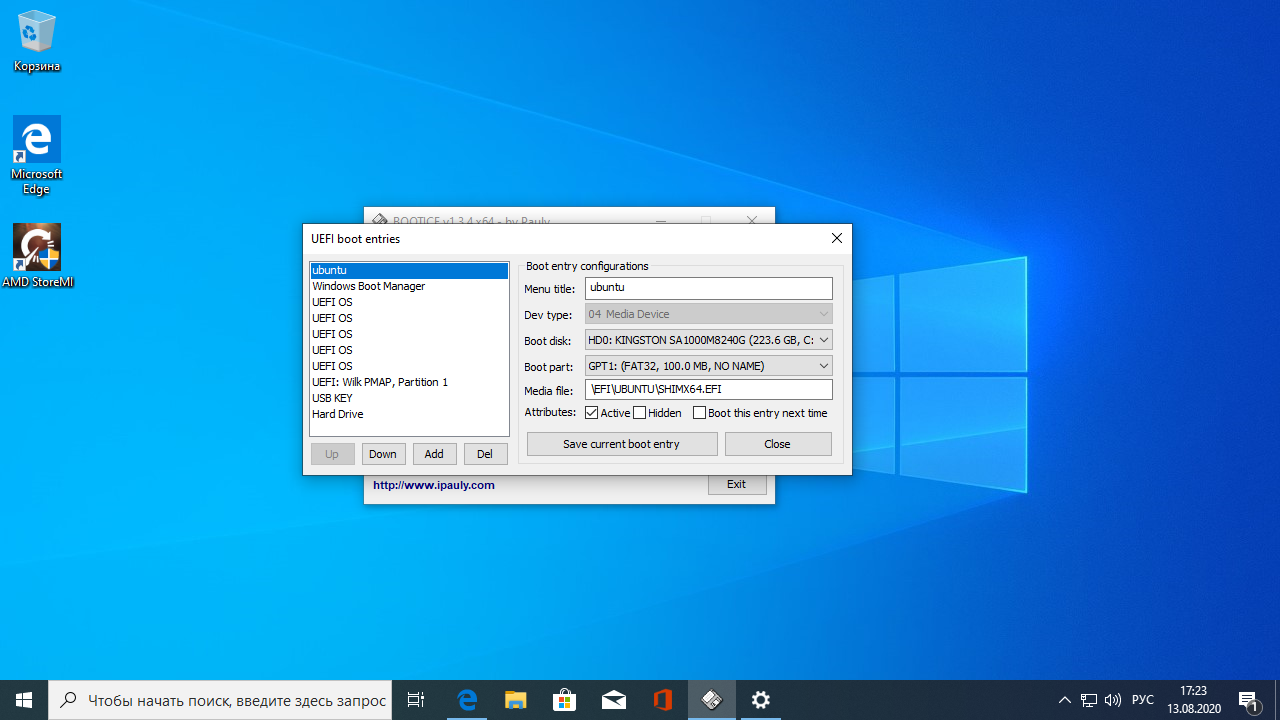 - timeout 10 — время отображения меню. По истечению 10 секунд загружается операционная система по умолчанию. Вместо «10» назначьте любую цифру