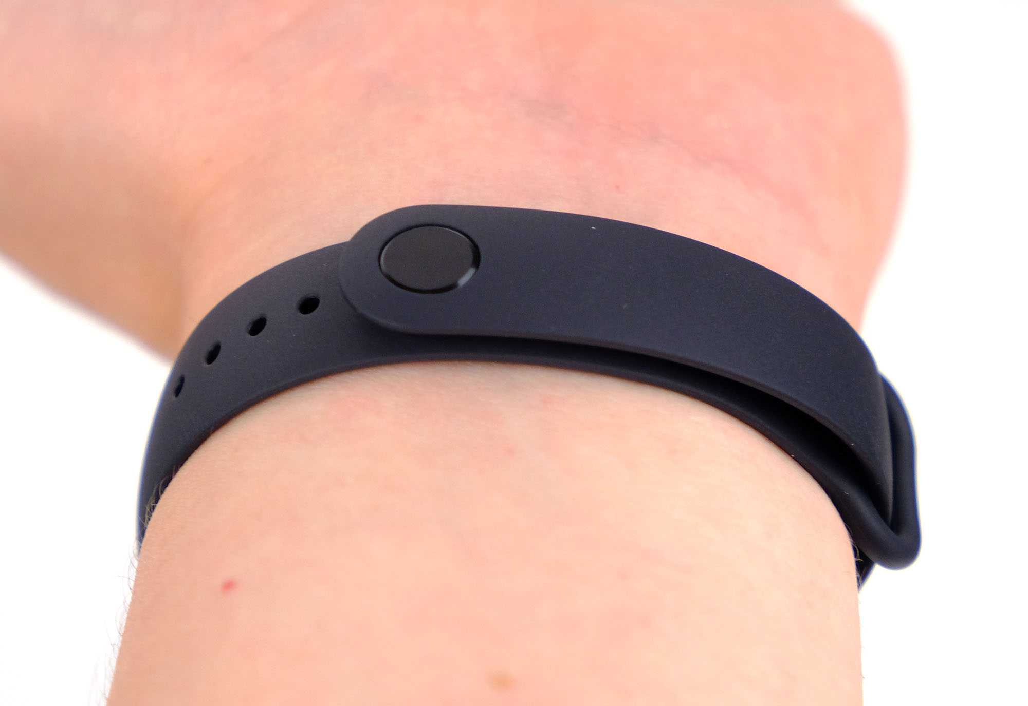 На руке браслет сидит так же хорошо, как и прошлые версии – пластик ремешка гипоаллергенный, почти не подвержен износу и практически не ощущается на запястье при длительной носке. Длина ремешка может варьироваться в пределах 155–219 мм.