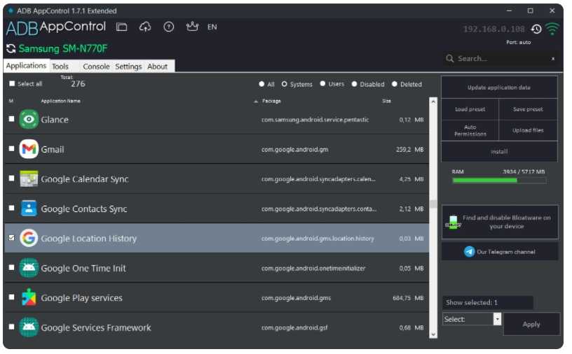Работать с клиентом очень просто, не требуется установка Java. Но – есть нюанс: как обычно, для работы требуется отладка по USB. Подключиться можно и через общую wi-fi точку, но проще все-таки традиционно, через кабель.