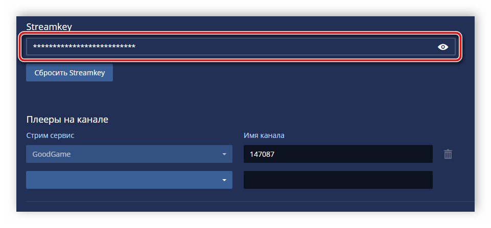 Здесь в разделе «Настройки видеокодера» найдите ключ, скопируйте его и вставьте в соответствующую строку на GoodGame.