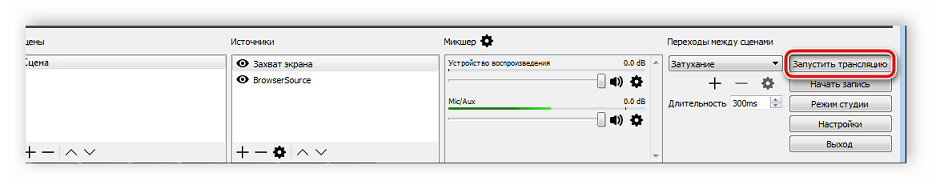 Закройте окно и если все готово к началу стрима, то нажмите на «Запустить трансляцию».