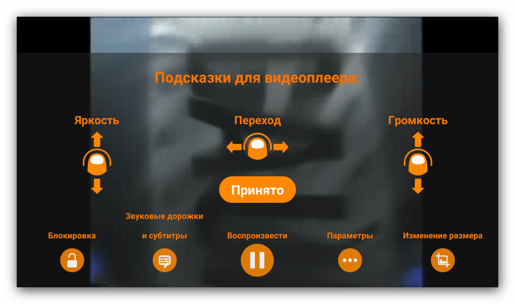- Управление осуществляется различными типами нажатий. Например, можно заблокировать экран, чтобы при случайном нажатии не перемотать видео.